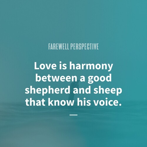 The shepherd/sheep idea is a good illustration (or picture) of love, but it isn’t the love itself. Love is not the good shepherd any more than the photo on your ID is you. These are tools meant to help you recognize the real thing.