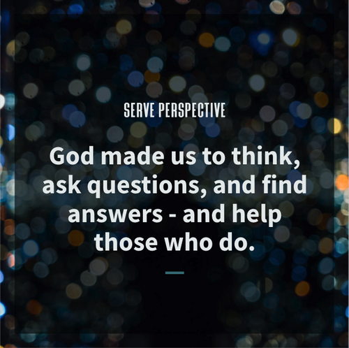 Since we're focused, in this series, on big questions and "letting the Almighty answer" them, let's consider in our Serve sections asking what may be smaller questions of, no offense, smaller people (than God.)
