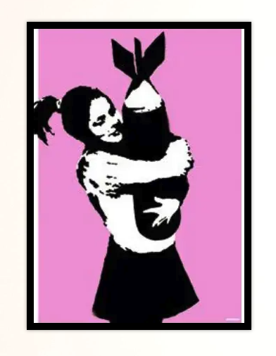 The image above is known as "Bomb Lover" and made by Banksy. We'll be exploring the idea of changing minds through art a bit in this Learn section.