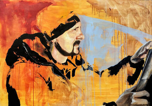 This work displays a father driving away from the city of Kiev to avoid Russian tanks. He is placed back-to-back with his son who prays that he and his family may all remain safe and endure this difficult time. This piece stresses the love and protection that Petro provided for those that needed it. In this fleeting moment he makes a decision and flees from the disaster, driving away from the city with a vehicle full of refugees and friends.