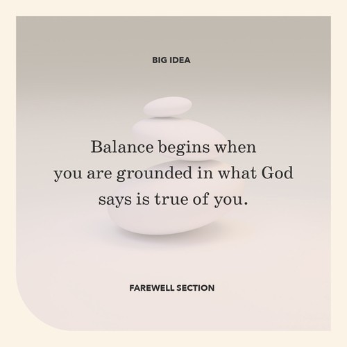 Balance requires confidence, and this confidence comes from God. Yet God doesn't wait for you to find spiritual balance. God provides balance by grounding you in a new identity. When you stop quantifying your spiritual accomplishments and instead begin the practice of echoing God's qualifying words about you, you are unshakable at your core and poised to build a balanced life on Christ.